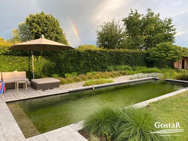 Je wil kunnen genieten van de laatste zonnestralen met een cocktail in de hand aan de rand van je zwemvijver met uitzicht op een prachtige bloemenweide.