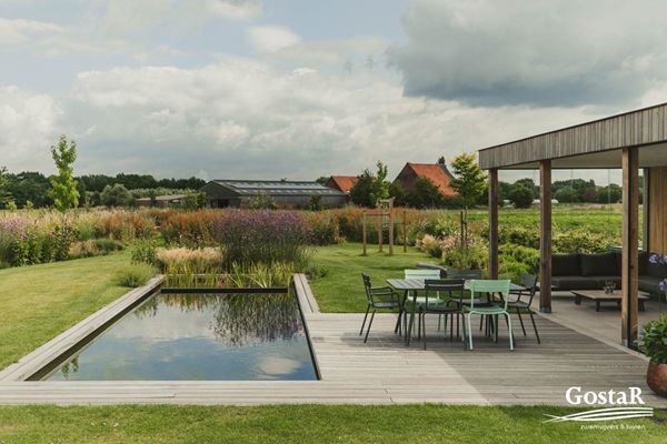 - hardhouten vijverrand en terras