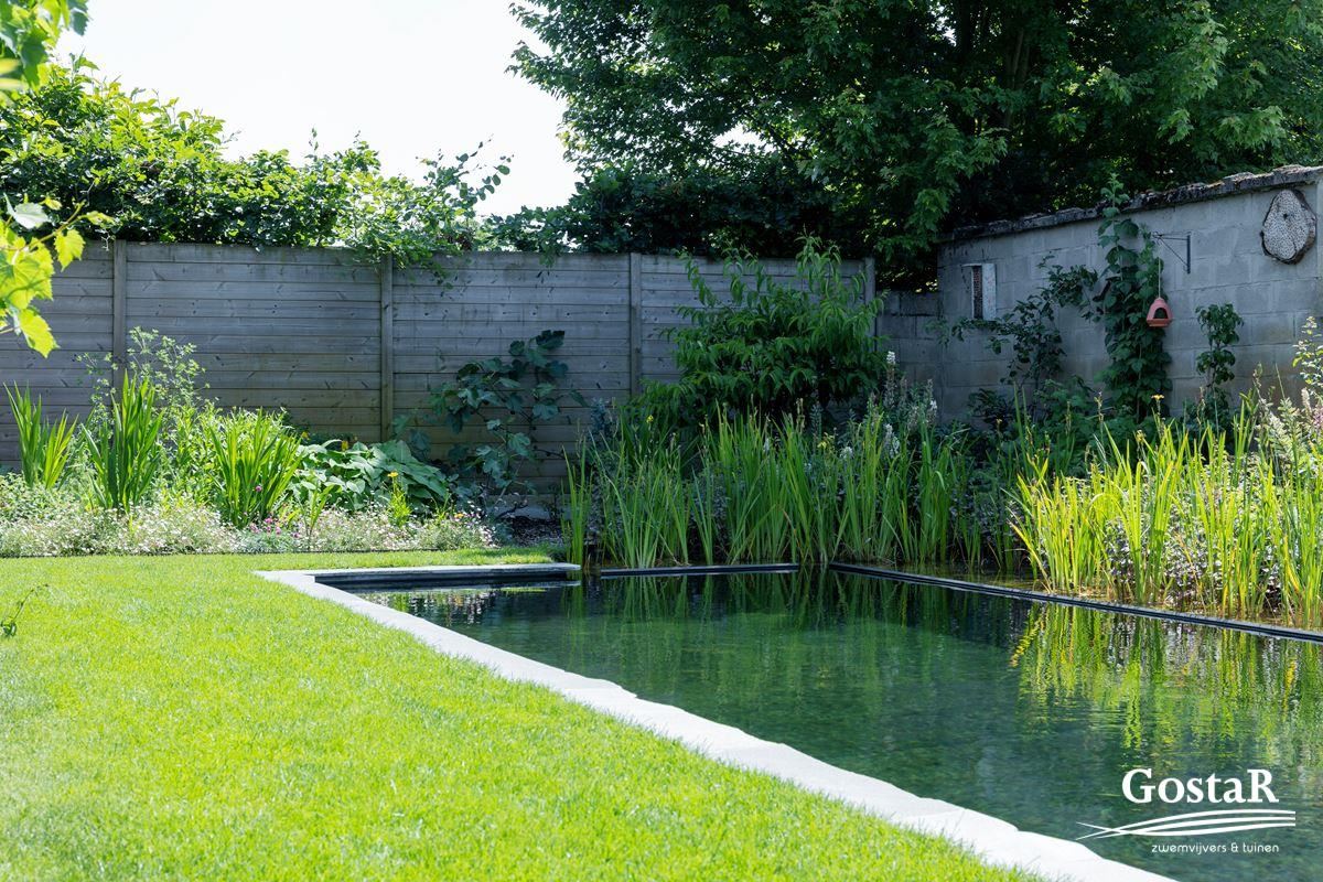 De goede grond wordt zo goed mogelijk ter plaatse herwerkt. De wanden worden verstevigd met murfor bewapening en kan bekleed worden met comfortfoam voor een zachte feel tijdens het zwemmen. De vijverrand bestaat kan bestaan uit natuursteen, hout of eerder een fijn Pondi H-profiel.